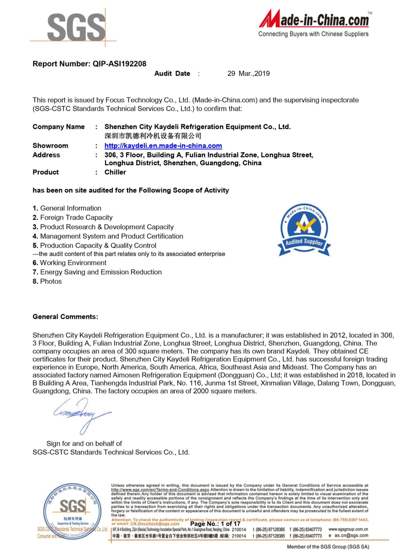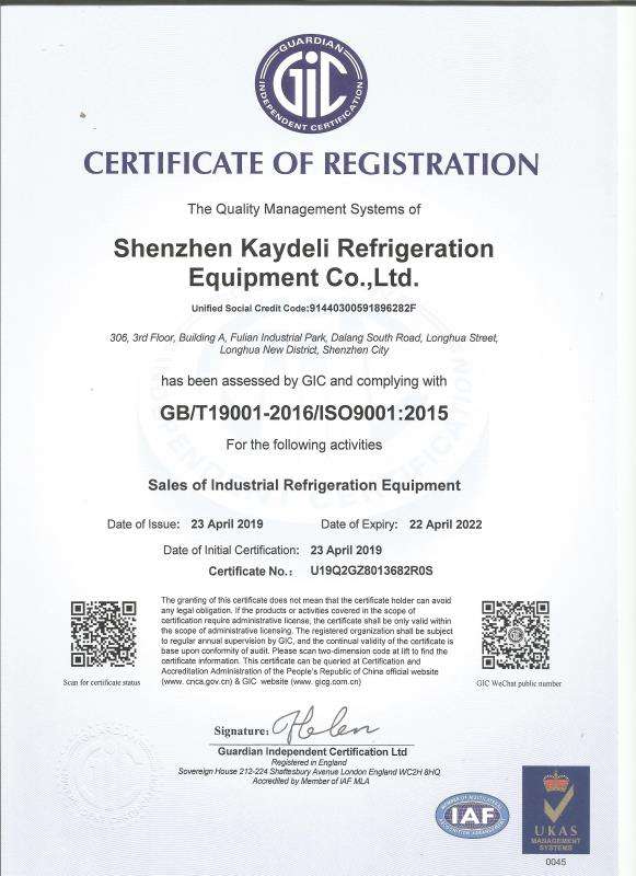 The US Kaydeli Group was established in Texas in 1966, USA. Was set up the HK production base in 1996 named Kaydeli Group (HK) Co., Ltd. With the rapid development, Kaydeli move to Shenzhen Guangdong province and set up Shenzhen Kaydeli Refrigeration Equipment Co., Ltd in 2012. (hereinafter referred to as Kaydeli).